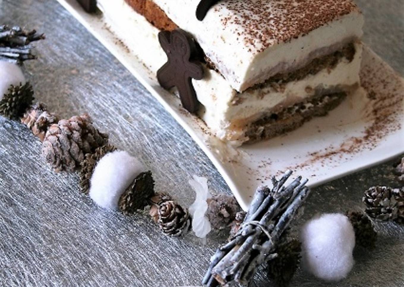 Bûche pain d'épices, poires, mousse mascarpone Bio, sans oeufs ni gluten..