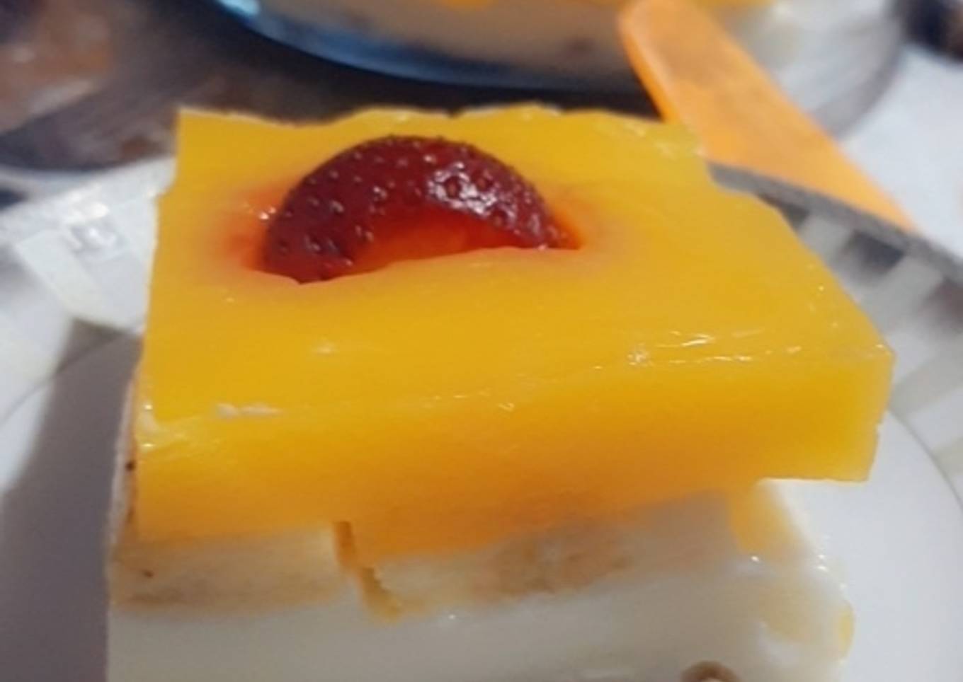 - Prenez le jus d'orange faites le bouillir avec 2 cas de crème patissière + 2 cas sucre semoule mettez apres ébulition tirez le feu. Versez le sur le mélange et mettez les au refrigérateur